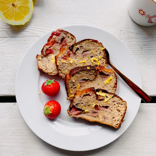 Aardbeien bananenbrood met citroen
