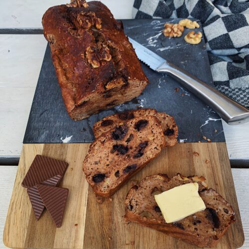 Dit bananenbrood heeft niet veel uitleg nodig. Chocolade maakt namelijk alles lekkerder, zo ook dit verantwoorde baksel. De walnoten in het bananenbrood geven dit baksel een lekkere bite.