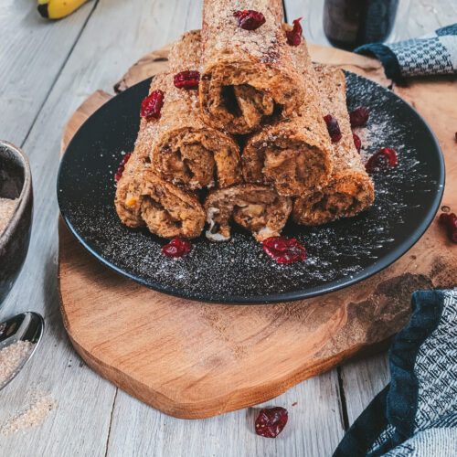 Wentelteefrolletjes met banaan en kaneel